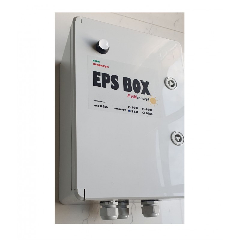 EPS BOX od PVMonitor.pl jest urządzeniem do automatycznego przełączania zasilania domu (obwodów krytycznych) na zasilanie awaryjne z magazynu energii przy zaniku zasilania z sieci.