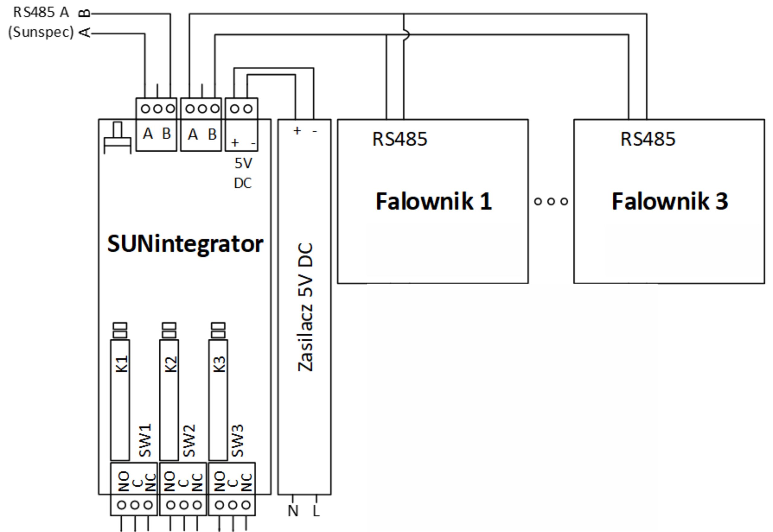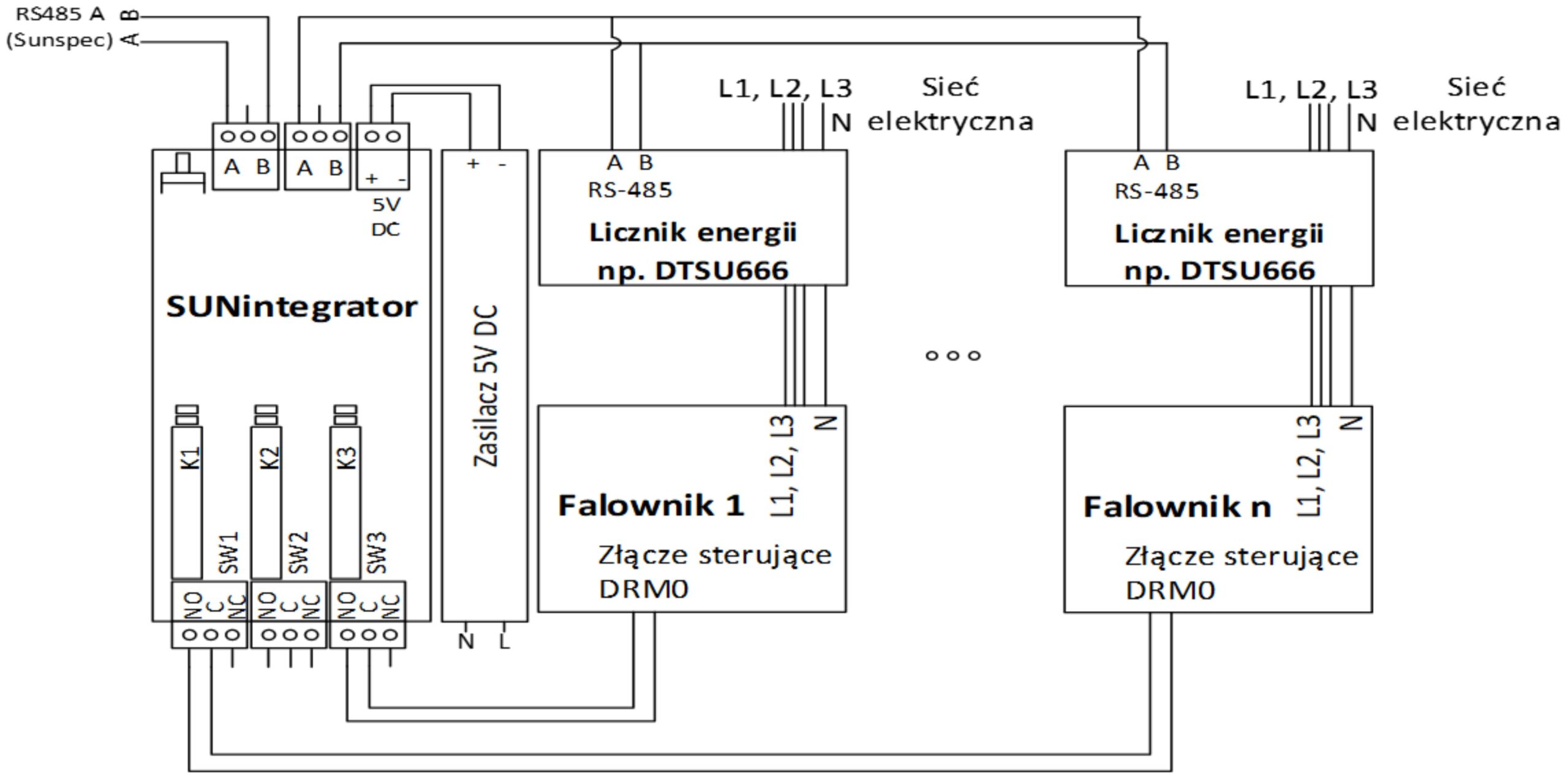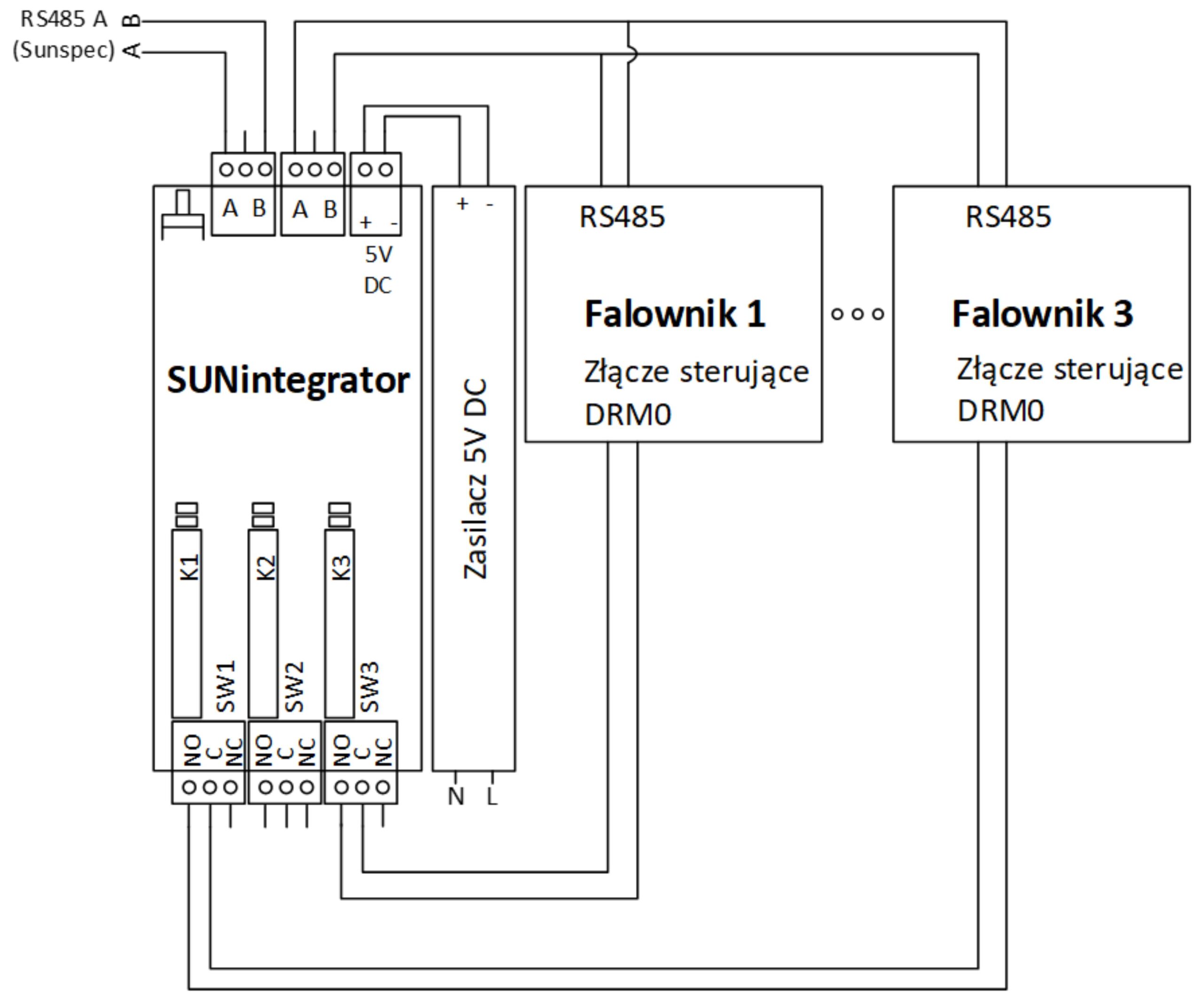 2a – jeśli inwertery NIE obsługują komunikację RS485, ale posiadają gniazdo DRMO (max 3)