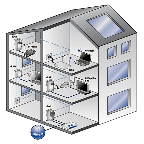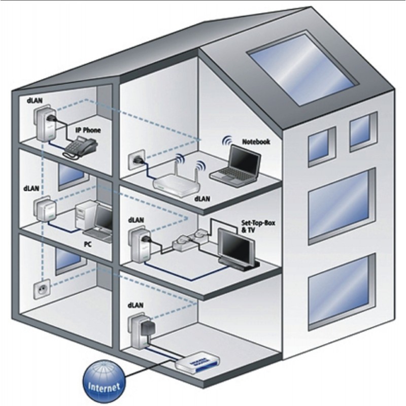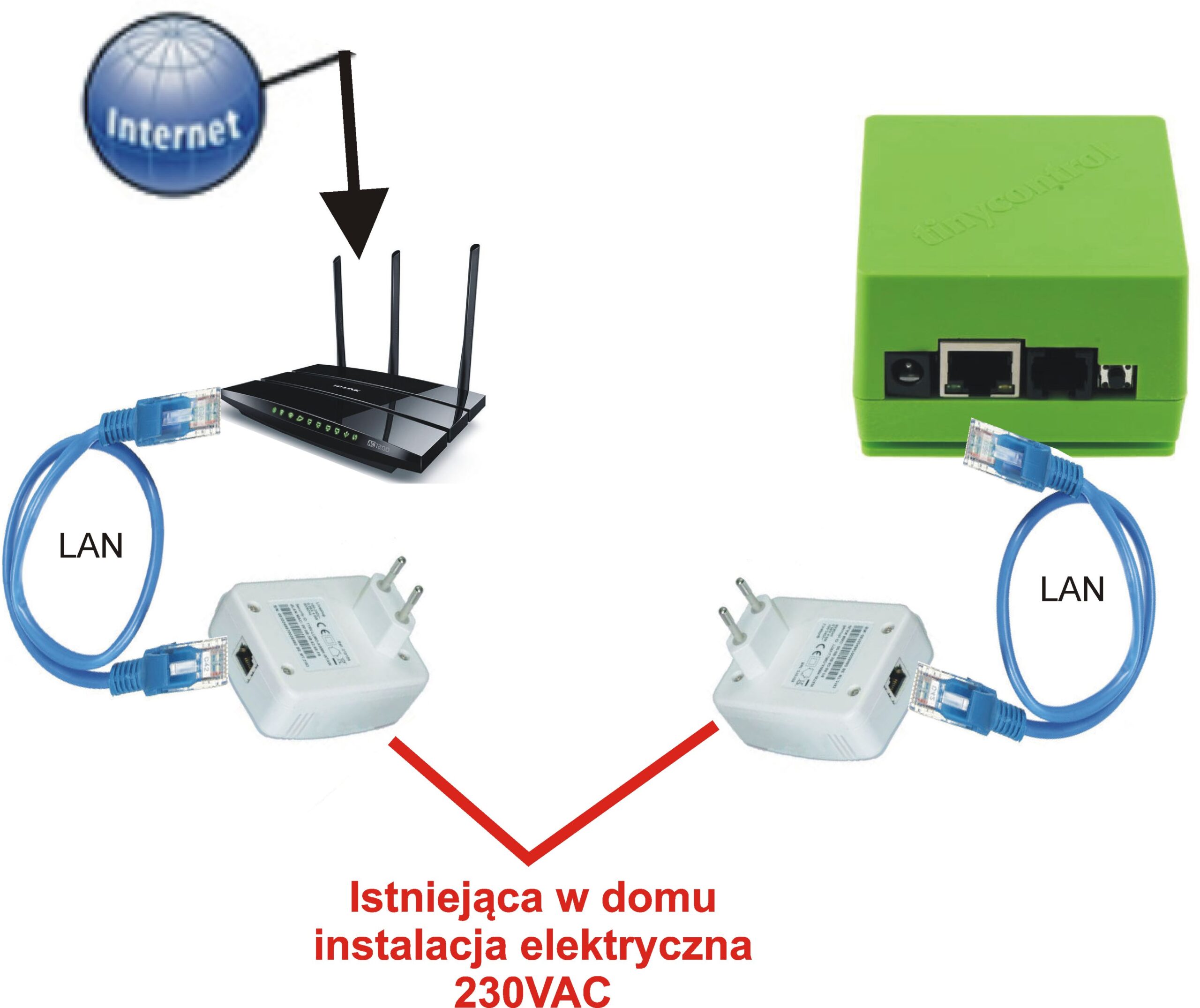 Wystarczy, że jeden moduł internet po kablach AC włączymy do gniazdka 230V przy routera i podłączymy przewód LAN do routera.
